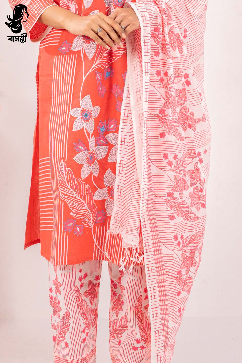 ১০০% পিওর কটন, ম্যানুয়াল এমব্রয়ডারি, ডলার ওয়ার্ক, স্ক্রিন প্রিন্ট।